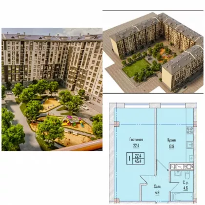 В избранное Продается 1-комн. квартира, 45,4 м²